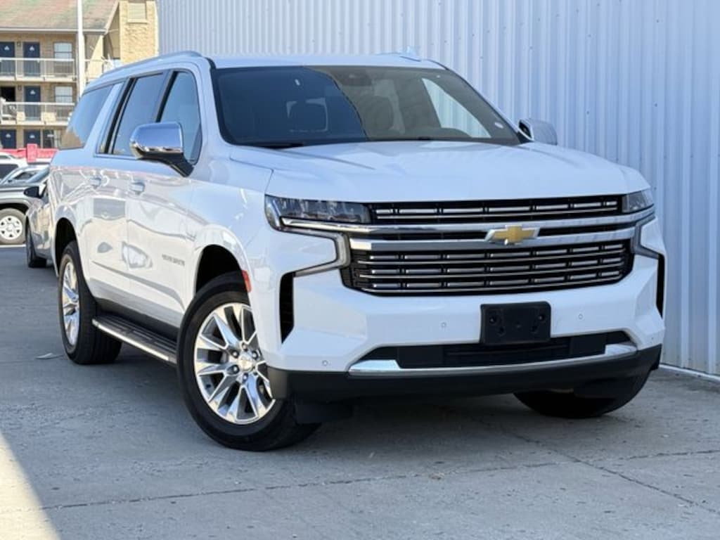 This Summit White Suburban Premier is equipped with a robust 8-cylinder engine paired with a smooth 10-speed automatic transmission, delivering confident performance whether navigating city streets or rugged terrain. The 4x4 drivetrain and locking limited-slip differential provide exceptional traction and control, ideal for outdoor adventures or towing heavy loads with the integrated tow hitch. Inside, indulge in premium leather seats with heating and cooling options for both front and rear passengers, complemented by memory settings for personalized comfort. The spacious three-row seating ensures ample room for family or gear, while the power-folding mirrors and running boards enhance convenience and accessibility. Safety is paramount with features like blind spot monitoring, lane keeping assist, front collision mitigation, and a suite of airbags providing peace of mind on every drive. Technology elevates your experience with a built-in navigation system, WiFi hotspot, remote engine start, and a premium sound system that keeps you connected and entertained. The power liftgate and universal garage door opener add effortless functionality, making this Suburban the perfect companion for those who value capability, comfort, and cutting-edge innovation in one commanding SUV.