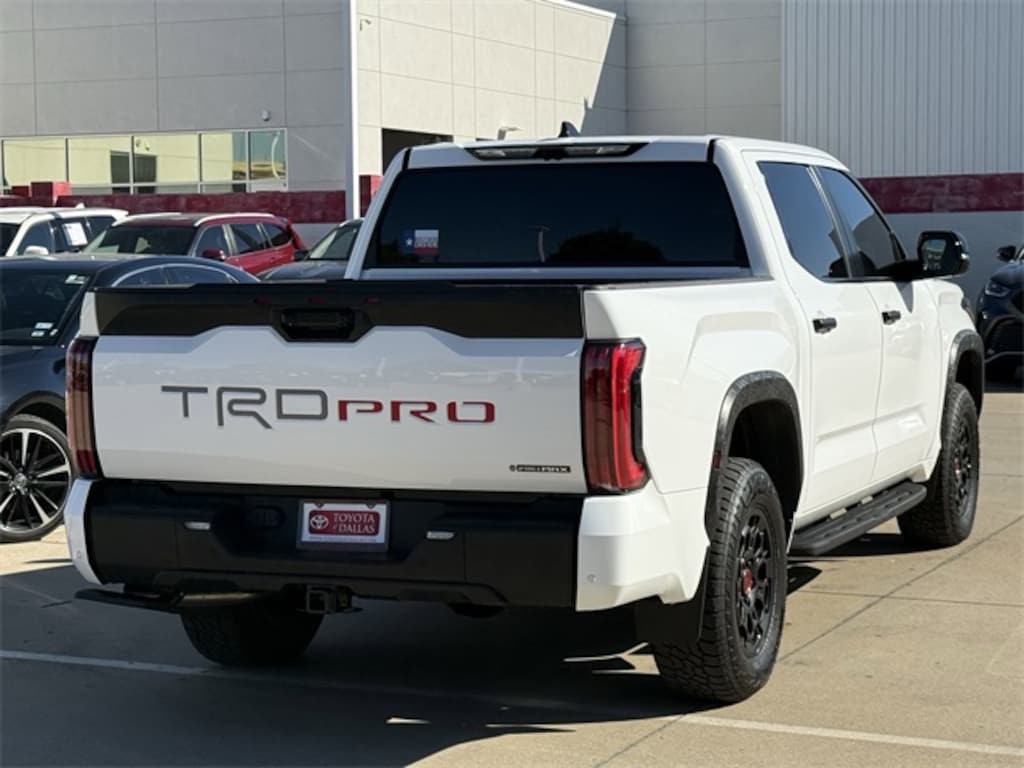 The Tundra's Ice Cap exterior color not only stands out but is also designed to withstand the elements, ensuring durability and style. The TRD Pro package includes advanced off-road capabilities, such as upgraded suspension and all-terrain tires, making it ready for any adventure. Inside, the cabin is crafted with premium materials and innovative technology, including an intuitive infotainment system and advanced driver-assistance features, ensuring safety and connectivity on every journey.